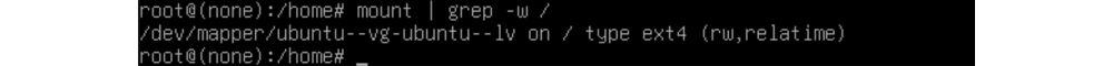 Để kiểm tra lại root file system đã được chuyển sang chế độ read và wirte ta dùng lệnh: mount | grep -w /