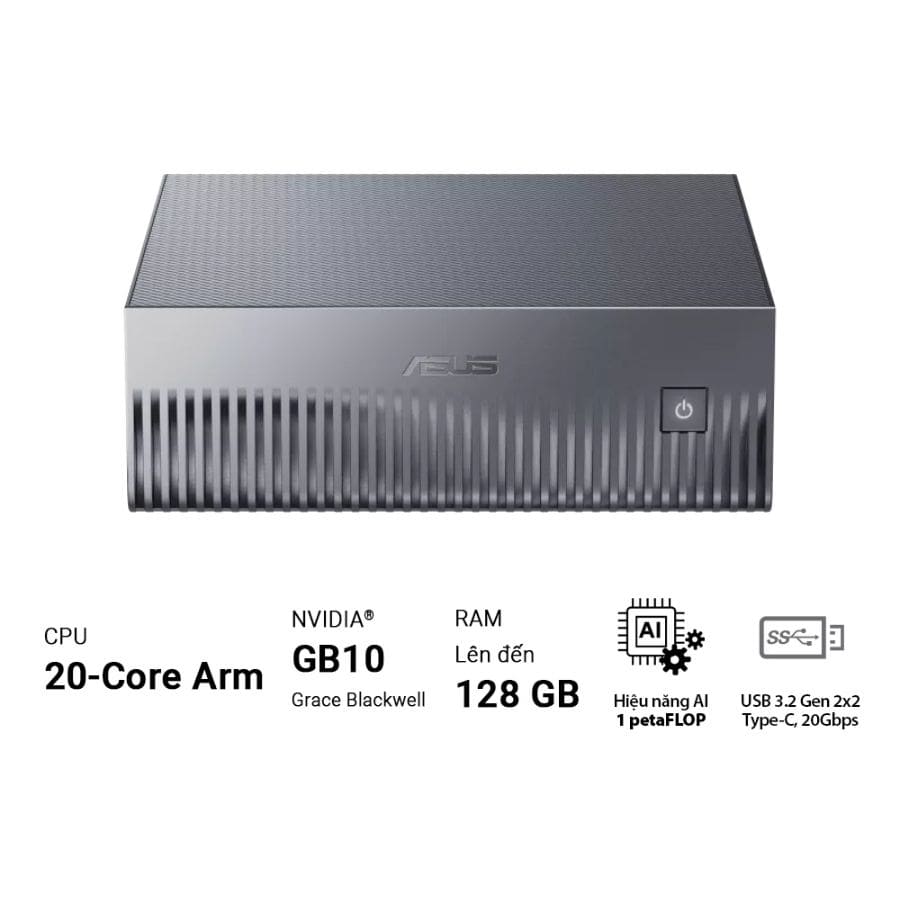 ASUS Ascent GX10-GG0036BN là dòng Mini PC AI để bàn nhỏ gọn được thiết kế dành riêng cho các doanh nghiệp, tổ chức nghiên cứu và phát triển AI muốn khai thác sức mạnh trí tuệ nhân tạo ngay tại chỗ. Với kích thước 150 x 150 x 51 mm nhưng mang lại hiệu năng AI lên đến 1 petaFLOP để xứ lý khối lượng công việc lớn.